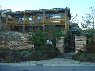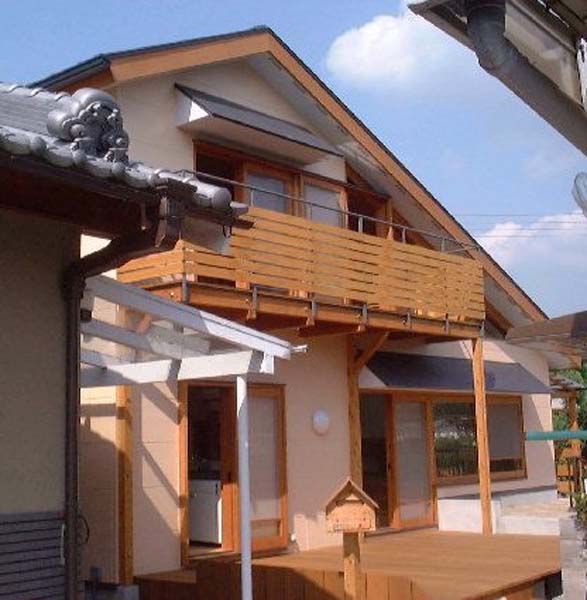 木をふんだんに使った和洋折衷の随所にこだわりをもった住宅です。構造体となっているとても太い柱がこの住宅の顔となっています。整備された庭と奥行きのあるテラスとバルコニーが家全体をゆったりとしたものにしています。
