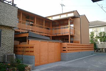 閑静な住宅街に建つ木の香りに溢れた住宅です。姉妹のお二人がそれぞれ住む一、二階がそれぞれの個性をもち、庭を囲むL字型の通路にもなるデッキが優しく内外をつなぎます。